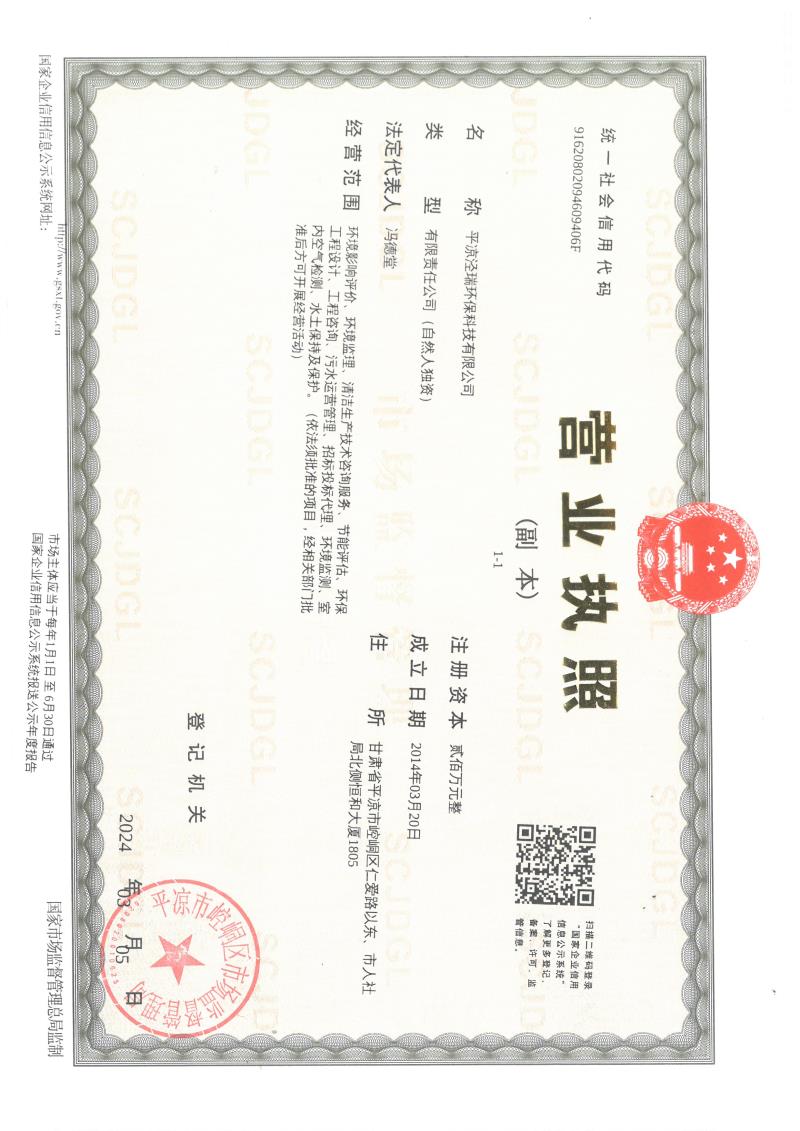 平涼涇瑞環(huán)??萍加邢薰緺I業(yè)執(zhí)照